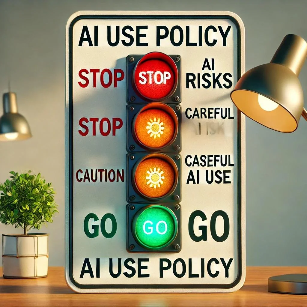 An AI use policy is a set of guidelines and rules that define how artificial intelligence tools and technologies should be used within a company. It serves as a framework to ensure that AI is implemented ethically, safely, and in alignment with your organization's values and goals. Think of it as the company's AI traffic light: it gives clear instructions to help employees understand when to go full speed, slow down and stop using AI entirely.